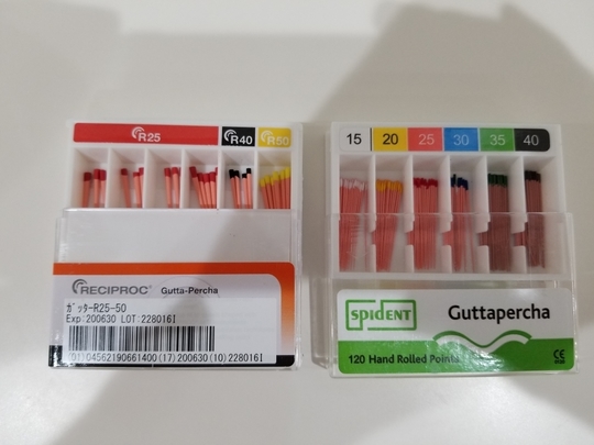 ・根管充填は基本的にはシングルポイント充填を行います。レシプロックソフトに対応しているポイントを使用します。