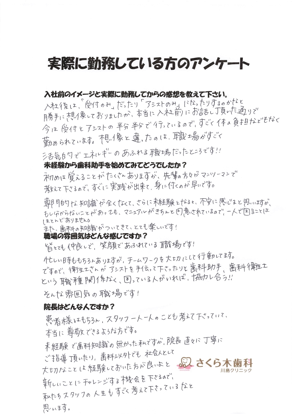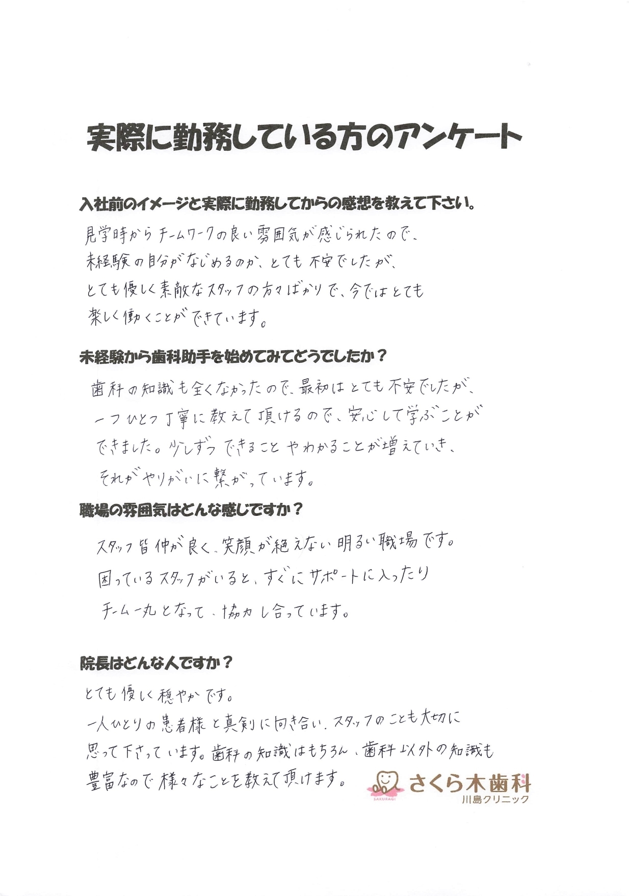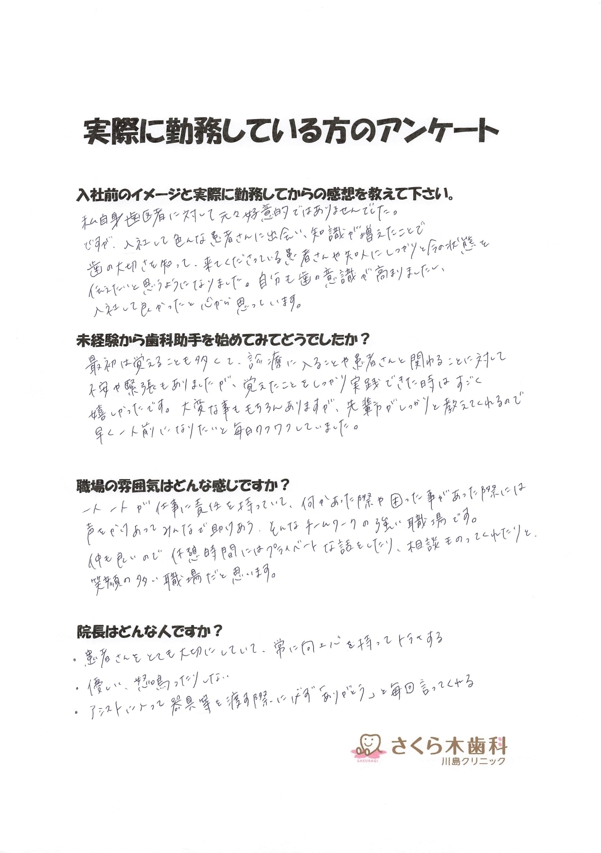 さくら木歯科こども歯科の求人専用Instagramです。ぜひ、フォローしてください。