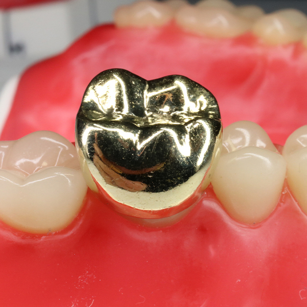 金を用いたインレー・クラウンです。強度があり、安定して使用できます。また歯との間に隙間ができにくく、汚れの侵入による虫歯の再発を防げます。