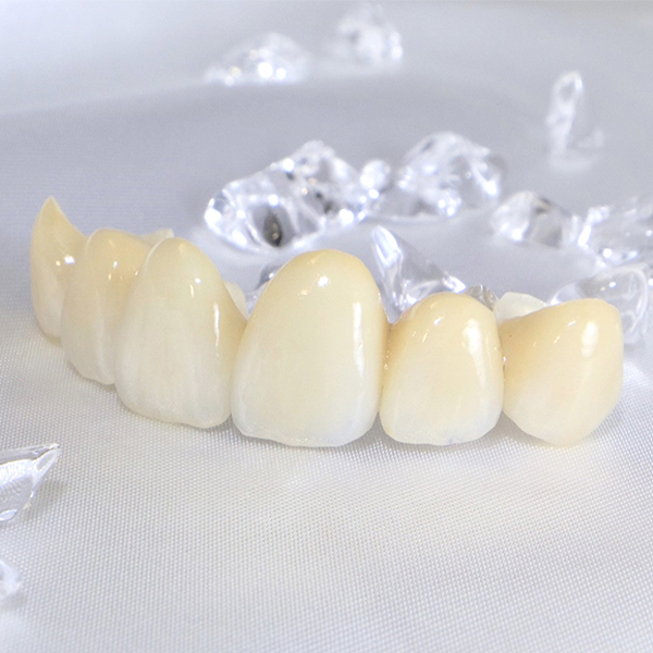 内側部分に硬いジルコニア(セラミックの一種)を使用し、上からセラミック(陶器)を焼き付けて作られた被せ物です。強度が高く耐久性に優れていて、かつ透明感があり審美性も高いため前歯に適しています。