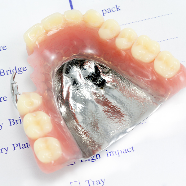 金属床義歯は、入れ歯の土台となる床(しょう:歯茎に接する部分)が金属でできている入れ歯です。床が薄いため装着時の違和感が少なく、食べ物の温度を感じやすい特徴があります。