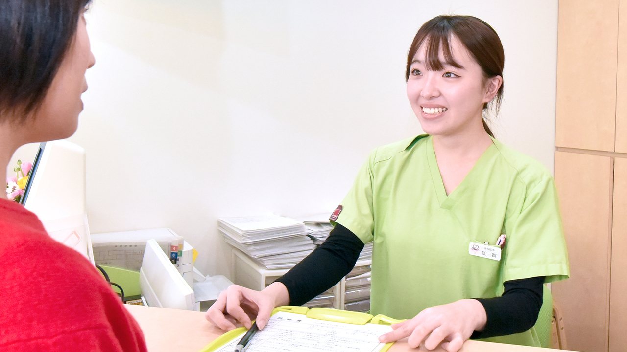 ご来院されましたら、受付へお越しください。こちらで保険証のご提示と問診票への記入をお願いします。再診の患者さまは診察券のご提示のみで結構です。