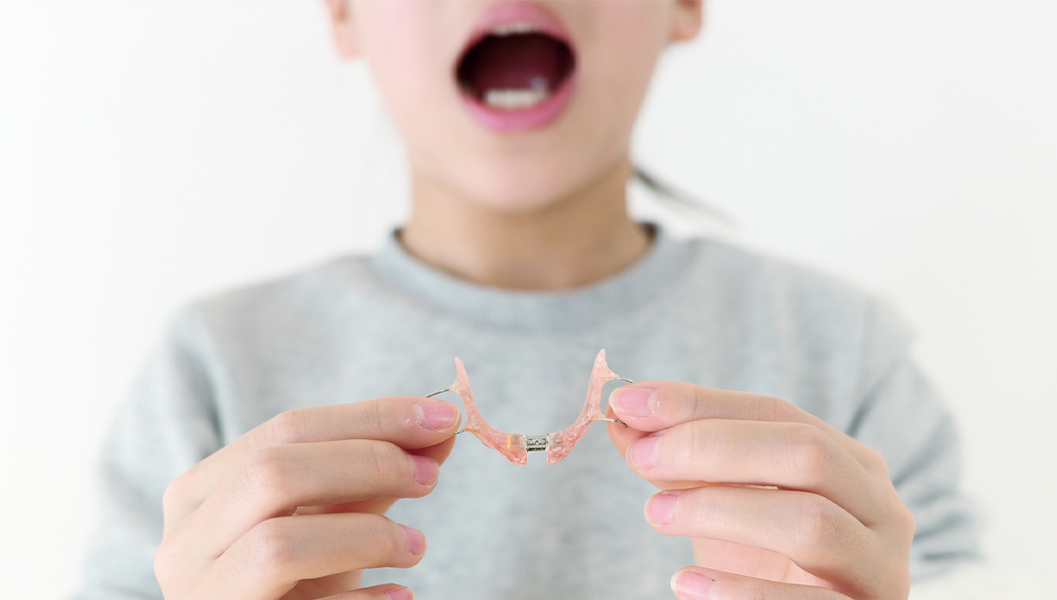取り外し式の装置をお口の中に入れ、お子さまの成長に合わせて歯並び全体の幅を少しずつ広げることで、自然な歯並びへと誘導する矯正治療です。